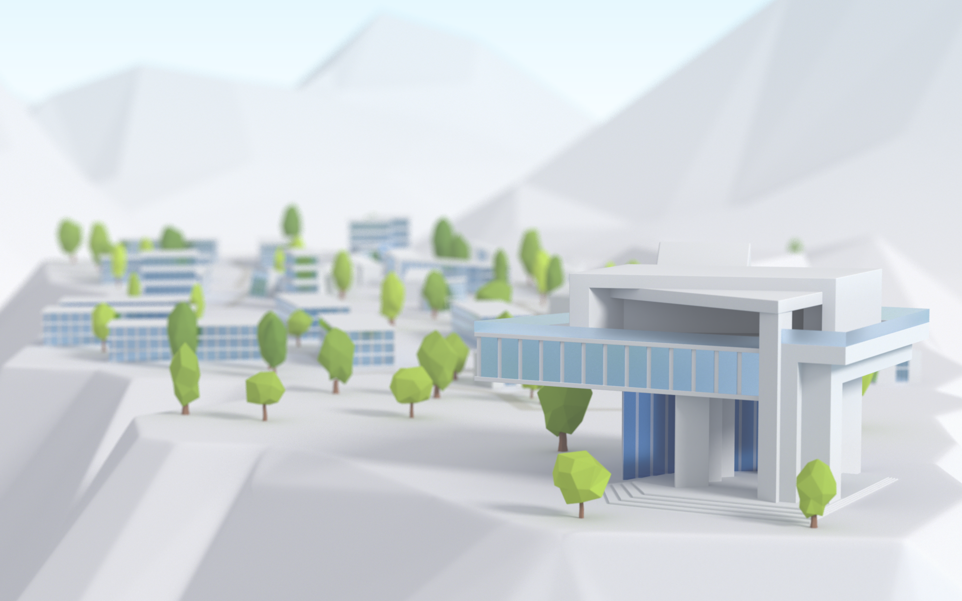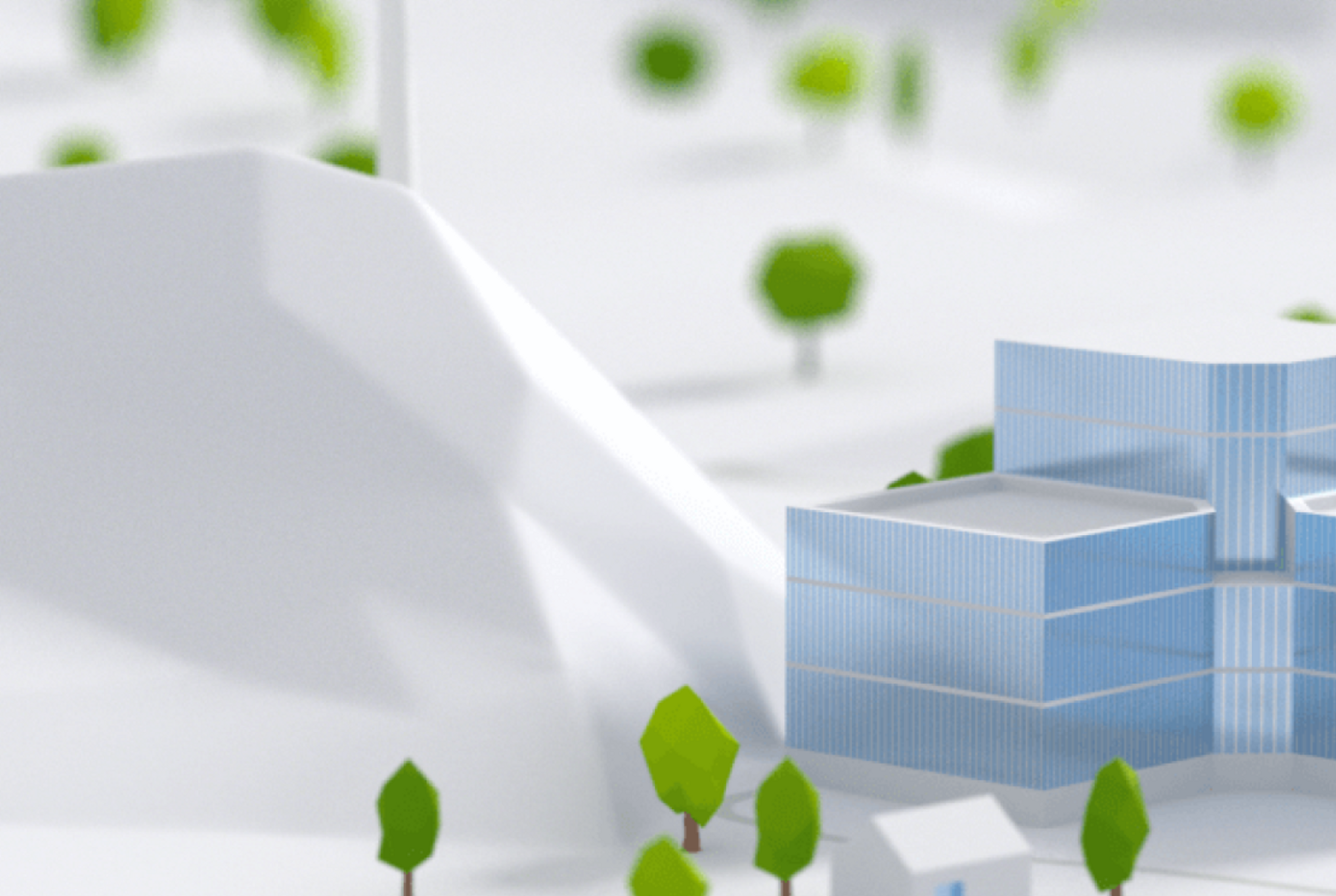 The 3D presentation leverages modern architecture — each building highlighting the array of sustainable companies the firm invests in.