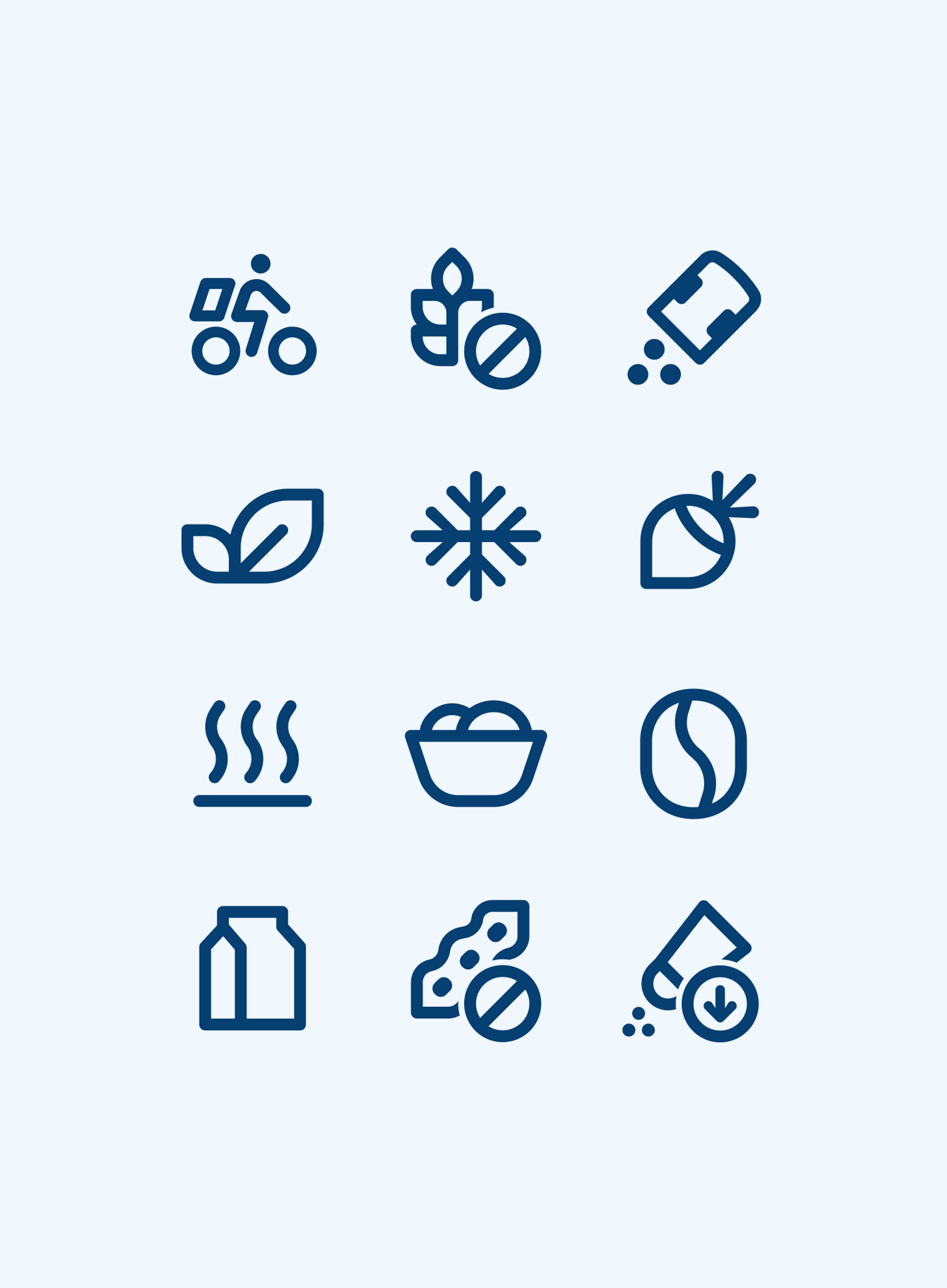 For the icons and pictograms, we structured rounded corners with confident geometric lines on a grid to maintain visual harmony across the custom elements.